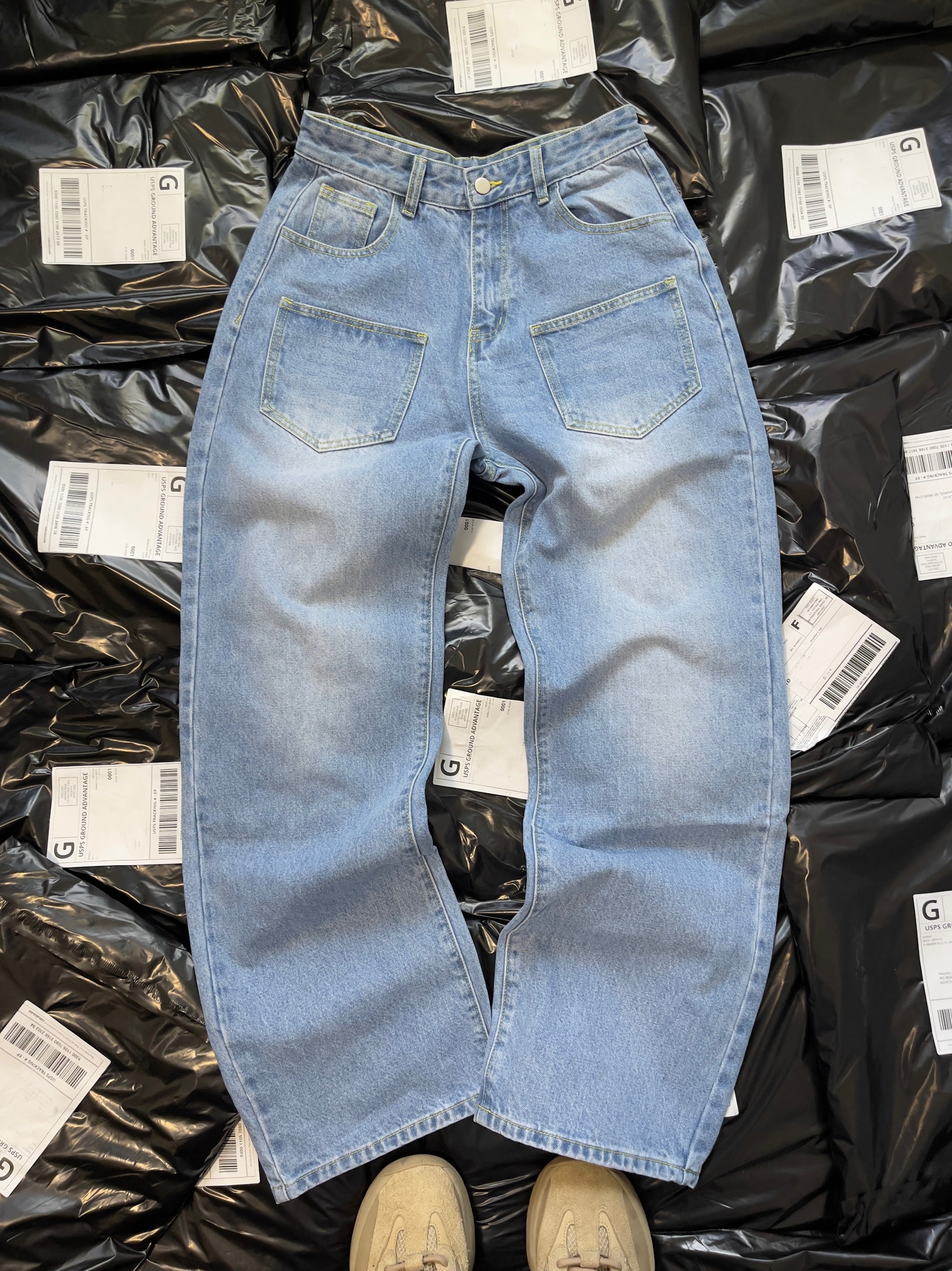 Cherry blossom embroidery with 250k+ stitches on each jean, Front pockets, Leather Jacron Patch, Custom packaging